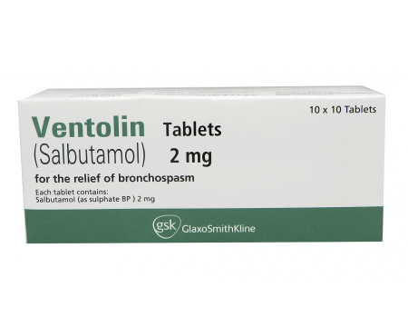 Ventolin tablets contain the active ingredient Salbutamol, a selective pulmonary beta2-adrenergic receptor agonist. It works by relaxing the muscles, making air passage through the respiratory tract easier.